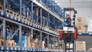 Das Assistenzsystem reagiert auf definierte Hindernisse im Regal, am Boden oder an der Decke und begrenzt an diesen Stellen gezielt Fahrzeugfunktionen wie die Geschwindigkeit und Hubhöhe. Das Fahrzeug erkennt seine Position innerhalb des Schmalgangs mit Hilfe von RFID-Tags oder Barcodelabels. So werden Beschädigungen vermieden.